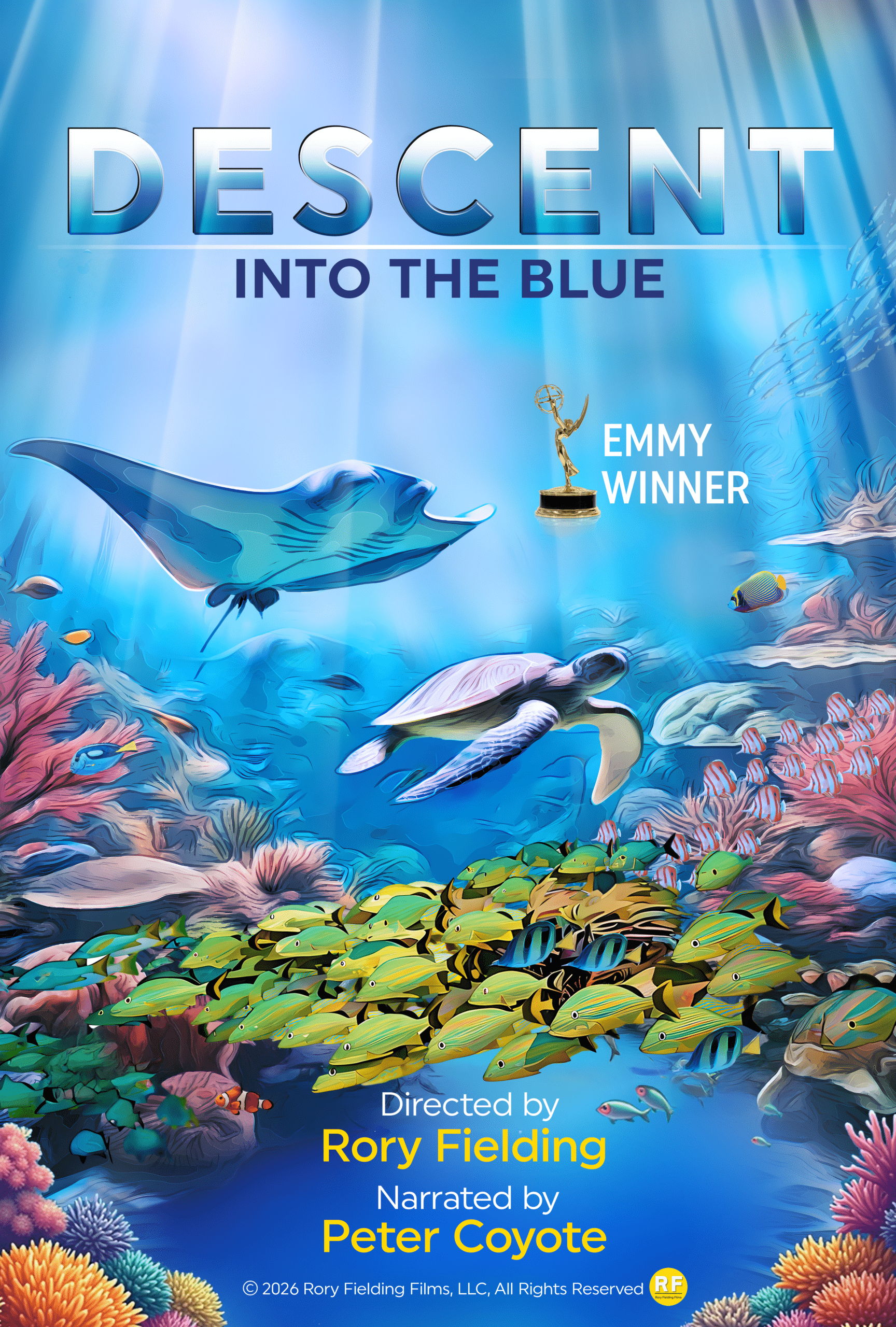 Our process was unique, the film structured like a symphony in five movements—Majesty, Exploration, Problem, Battle, and Hope. DESCENT-Into The Blue takes viewers on a theatrical journey into the underwater world. Through the eyes of veteran underwater videographers with decades of experience we witness the profound transformations and human impact on our reefs and seas.
